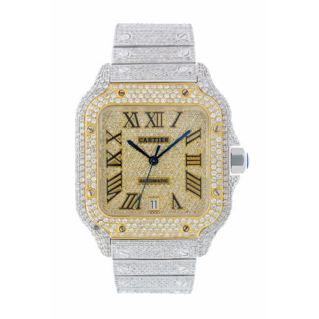 Cartier Cartier Santos Mens 40mm Large Model Steel Watch Yellow Roman Iced 20ct Diamonds