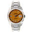 36mm stainless steel case, 18K white gold bezel set with 52 brilliant-cut diamonds, silver dial, Roman numerals, and stainless steel Oyster bracelet.