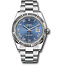 41mm white Rolesor case comprised of a 904L steel monobloc middle case, screw-down steel back, screw-down crown with twinlock double waterproofness system, 18K white gold fluted bezel, scratch-resistant double anti-reflective sapphire crystal with cyclops lens over the date, blue dial, Roman numerals, Rolex calibre 3235 perpetual self-winding movement with date at 3 o'clock that changes instantaneously at midnight in a few thousandths of a second, approximately 70 hours of power reserve, 904L steel Oyster bracelet with flat three-piece links, folding Oysterclasp buckle with Easylink 5mm comfort extension link. Waterproof to 100 meters.