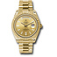 40mm 18K yellow gold case, screw-down back with Rolex fluting, screw-down crown with twinlock double waterproofness system, fluted bezel, scratch-resistant double anti-reflective sapphire crystal with cyclops lens over the date, champagne dial, 10 baguett Read more.