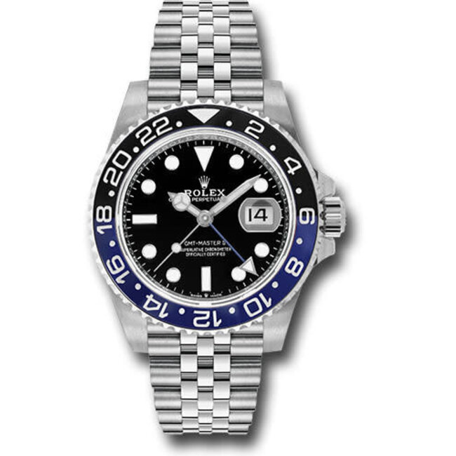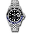 40mm stainless steel case with Oystersteel monobloc middle case, screw-down crown, bidirectional rotatable 24-hour graduated bezel with black and blue Cerachrom insert and engraved numerals, scratch-resistant sapphire crystal with cyclops lens over the date, black dial, hour markers set with Chromalight, Rolex calibre 3285 self-winding movement with second time-zone hour hand and instantaneous date, approximately 70 hours of power reserve, stainless steel Jubilee bracelet with rounded five-piece links, folding Oysterlock buckle with Easylink 5mm comfort extension link. Waterproof to 100 meters.